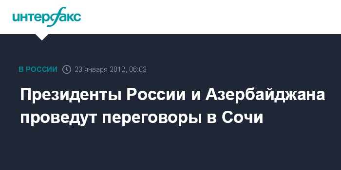 Президенты России и Азербайджана проведут переговоры в Сочи