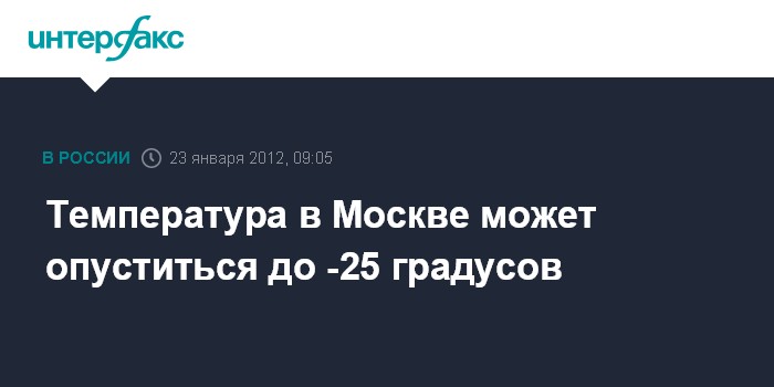 Температура в Москве может опуститься до -25 градусов