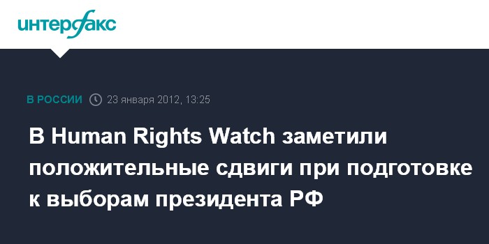 Москва. 23 января. INTERFAX.RU - Наблюдаются позитивные тенденции в обществе при подготовке к президентским выборам в России по сравнению с подготовкой к думским выборам, заявила на пресс-конференции в центральном офисе "Интерфакса" заместитель директора российского представительства Human Rights Watch Татьяна Локшина.