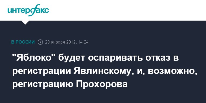 "Яблоко" будет оспаривать отказ в регистрации Явлинскому, и, возможно, регистрацию Прохорова