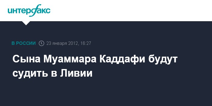 Бейрут. 23 января. INTERFAX.RU - Решением Международного уголовного суда (МУС) сына Муаммара Каддафи Сейфа аль-Ислама будут судить в Ливии, а не в Гааге, сообщает в понедельник интернет-сайт ливанской газеты "Эн-Нашра".