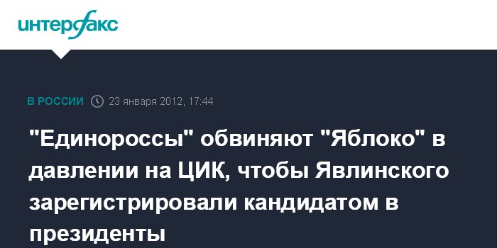 "Единороссы" обвиняют "Яблоко" в давлении на ЦИК, чтобы Явлинского зарегистрировали кандидатом в президенты