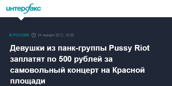 Девушки из панк-группы Pussy Riot заплатят по 500 рублей за самовольный концерт на Красной площади