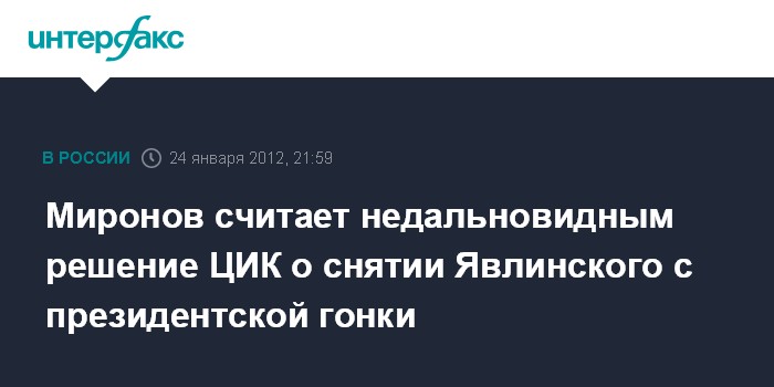 Миронов считает недальновидным решение ЦИК о снятии Явлинского с президентской гонки