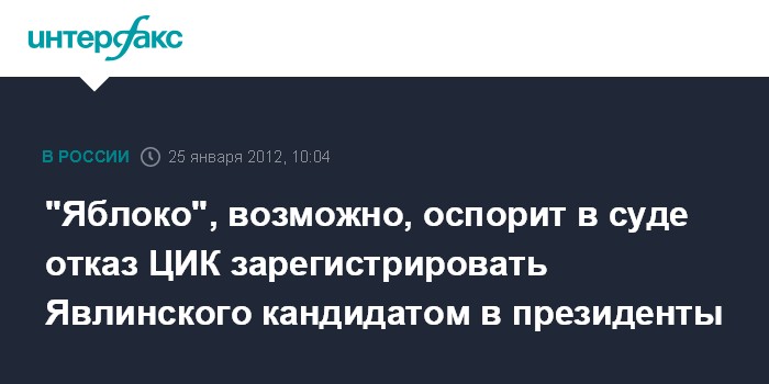 "Яблоко", возможно, оспорит в суде отказ ЦИК зарегистрировать Явлинского кандидатом в президенты