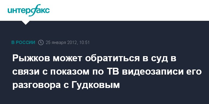 Рыжков может обратиться в суд в связи с показом по ТВ видеозаписи его разговора с Гудковым