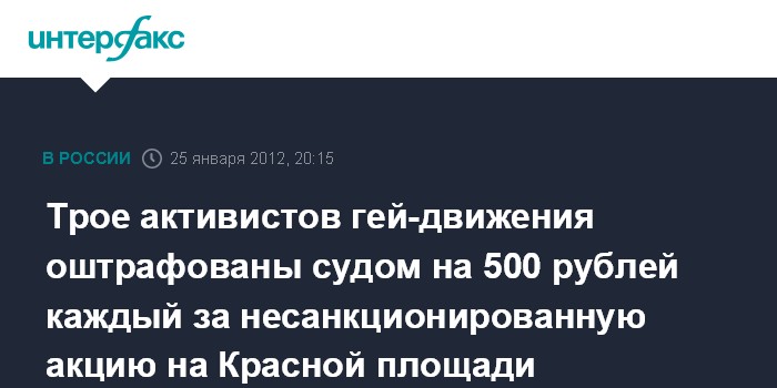 Трое активистов гей-движения оштрафованы судом на 500 рублей каждый за несанкционированную акцию на Красной площади