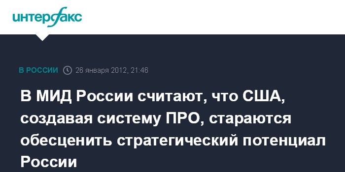 Москва. 26 января. INTERFAX.RU - Цель создания ПРО США - обесценить стратегический ядерный потенциал России, считает замглавы МИД РФ Сергей Рябков.