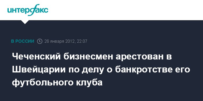 Чеченский бизнесмен арестован в Швейцарии по делу о банкротстве его футбольного клуба