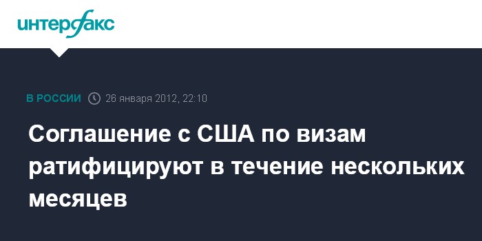 Москва. 26 января. INTERFAX.RU - Ратификация соглашения о визовых упрощениях между Россией и США пройдет в течение ближайших нескольких месяцев, заявил замглавы МИД РФ Сергей Рябков.