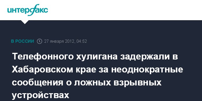 Телефонного хулигана задержали в Хабаровском крае за неоднократные сообщения о ложных взрывных устройствах