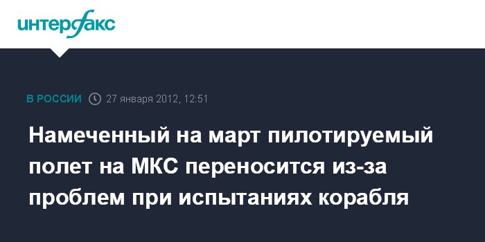 Москва. 27 января. INTERFAX.RU - Запуск пилотируемого космического корабля "Союз ТМА-04М" к Международной космической станции (МКС), который должен был состояться 30 марта, отложен на более поздний срок из-за проблем при испытаниях спускаемого аппарата корабля, сообщил "Интерфаксу-АВН" источник в ракетно-космической отрасли.