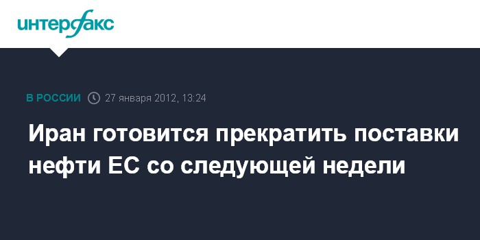 Тегеран. 27 января. INTERFAX.RU - Иран может прекратить поставки нефти в ЕС со следующей недели, заявил в пятницу заместитель председателя комитета по нацбезопасности и внешней политике иранского парламента Хосейн Ибрахими.