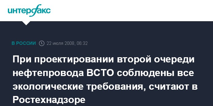 Хабаровск. 22 июля. ИНТЕРФАКС-ДАЛЬНИЙ ВОСТОК - Общественный совет при Ростехнадзоре подтвердил соблюдение природоохранного законодательства при проектировании трубопроводной системы "Восточная Сибирь - Тихий океан (ВСТО).