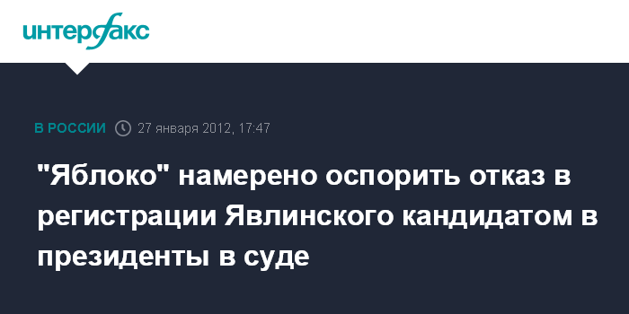Москва. 27 января. INTERFAX.RU - "Яблоко" планирует обратиться в суд в связи с отказом регистрировать кандидатом в президенты страны Григория Явлинского.