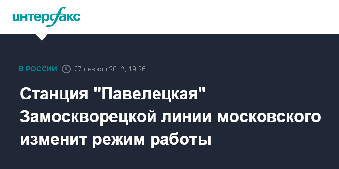 Москва. 27 января. INTERFAX.RU - Режим работы станции "Павелецкая" Замоскворецкой линии московского метро будет изменен в связи с ремонтом эскалатора, сообщили в пятницу "Интерфаксу" в пресс-службе метрополитена.