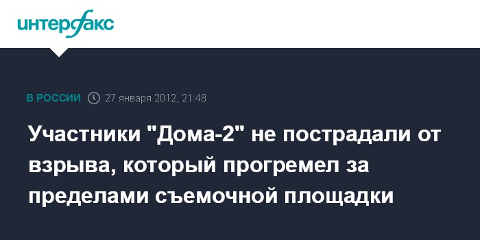 Москва. 27 января. INTERFAX.RU - Взрыв в зоне съемок программы "Дом-2" произошел за пределами съемочной площадки.
