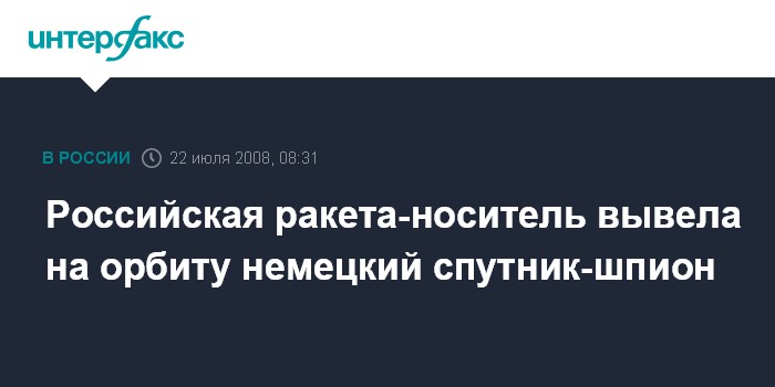 Это уже пятый спутник радиолокационной разведки, запущенный на орбиту с помощью российской ракеты в интересах бундесвера. Первый пуск произведен 19 декабря 2006 года, второй - 2 июля 2007, третий - 1 ноября 2007 года, четвертый - 27 марта 2008 года.