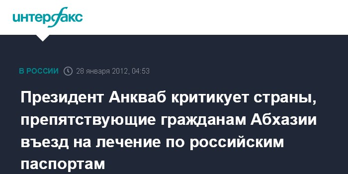 "Почему гражданам Абхазии с российскими паспортами можно выезжать в европейские страны на встречи, организуемые международными организациями, лоббирующими интересы Грузии, и нельзя - на лечение?" - спросил А.Анкваб.