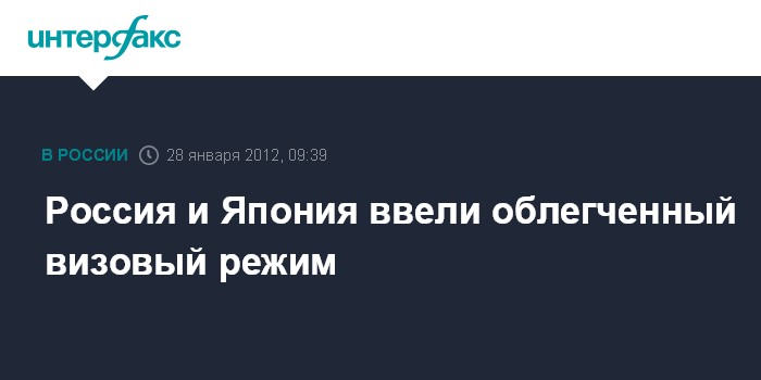 Токио. 28 января. ИНТЕРФАКС - Москва и Токио договорились о введении облегченного визового режима.