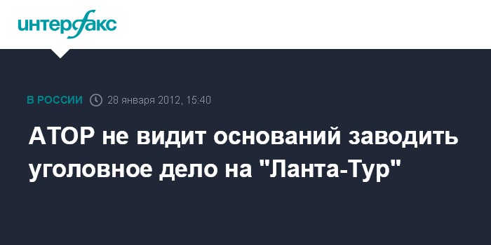 АТОР не видит оснований заводить уголовное дело на "Ланта-Тур"