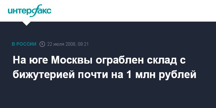 На юге Москвы ограблен склад с бижутерией почти на 1 млн рублей