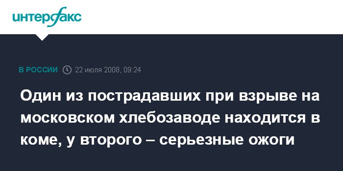 Один из пострадавших при взрыве на московском хлебозаводе находится в коме, у второго – серьезные ожоги
