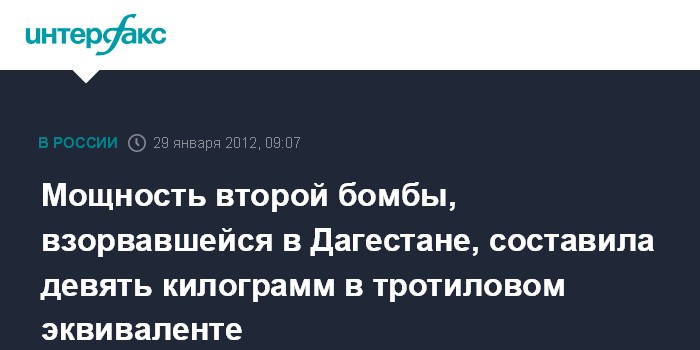 Ростов-на-Дону. 29 января. INTERFAX.RU - Самодельное взрывное устройство, сработавшее в Махачкале на проспекте Шамиля в субботу, составила 8-9 кг в тротиловом эквиваленте, сообщили агентству "Интерфакс-Юг" в правоохранительных органах Дагестана в воскресенье.