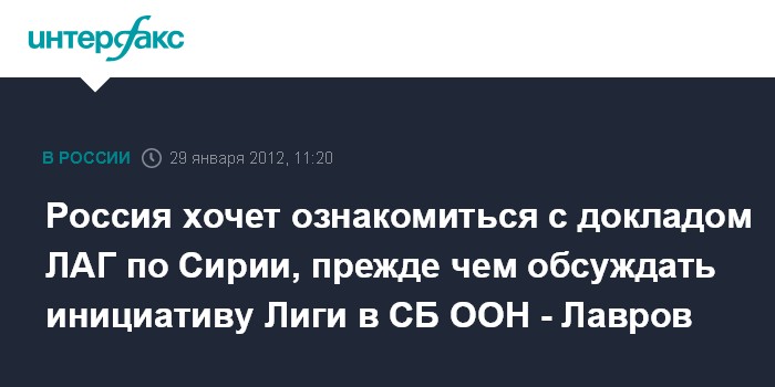 Россия хочет ознакомиться с докладом ЛАГ по Сирии, прежде чем обсуждать инициативу Лиги в СБ ООН - Лавров