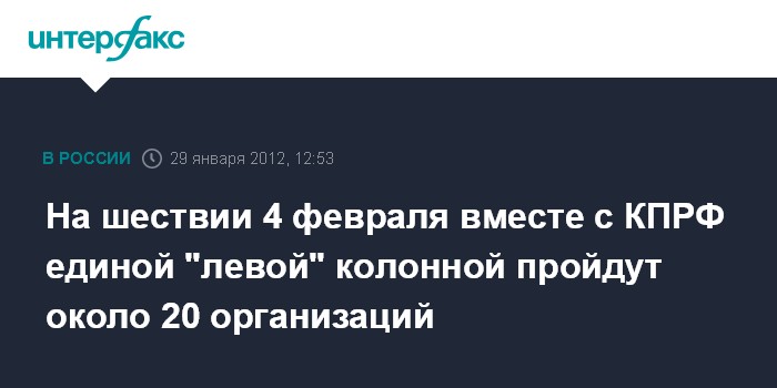 На шествии 4 февраля вместе с КПРФ единой "левой" колонной пройдут около 20 организаций