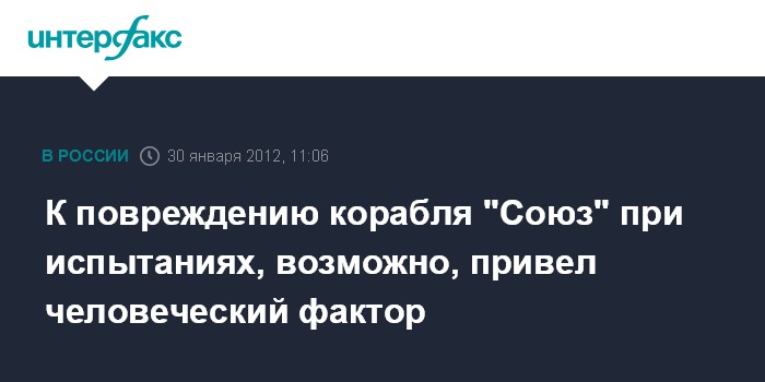 К повреждению корабля "Союз" при испытаниях, возможно, привел человеческий фактор