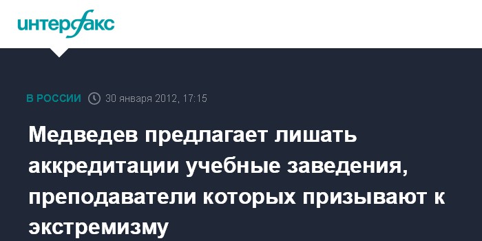 Медведев предлагает лишать аккредитации учебные заведения, преподаватели которых призывают к экстремизму