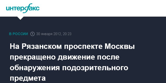 На Рязанском проспекте Москвы прекращено движение после обнаружения подозрительного предмета