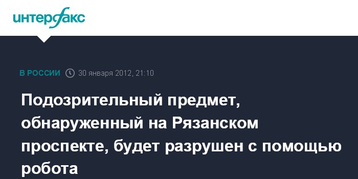 Подозрительный предмет, обнаруженный на Рязанском проспекте, будет разрушен с помощью робота