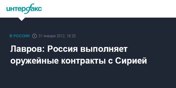 Сидней. 31 января. INTERFAX.RU - Россия продолжает поставлять вооружения Сирии, заявил глава МИД РФ Сергей Лавров.