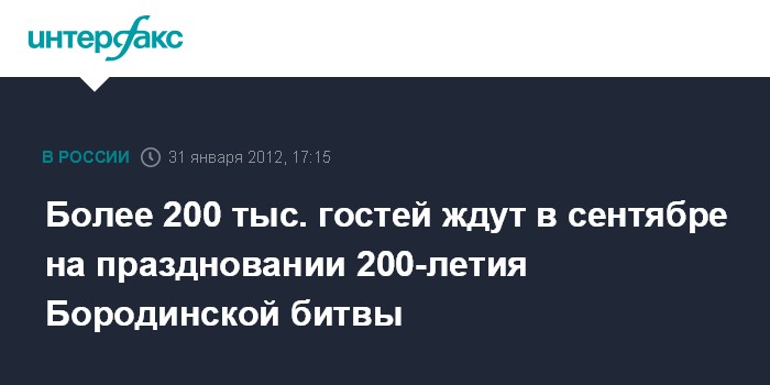 Более 200 тыс. гостей ждут в сентябре на праздновании 200-летия Бородинской битвы