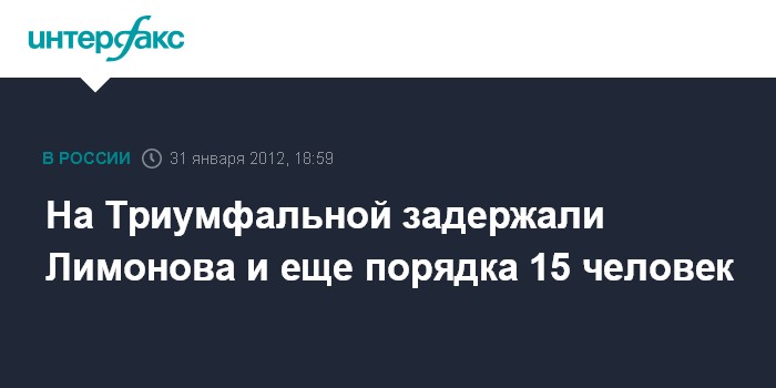Москва. 31 января. INTERFAX.RU - Оппозиционер Эдуард Лимонов задержан на Триумфальной площади в центре Москвы.