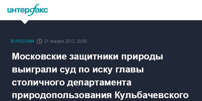 Москва. 31 января. INTERFAX.RU - Главе департамента природопользования Москвы Антону Кульбачевскому не удалось убедить суд в том, что защитники природы опорочили его честь, сказав, что он предоставляет недостоверную информацию столичному градоначальнику.