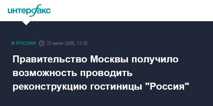 Правительство Москвы получило возможность проводить реконструкцию гостиницы "Россия"