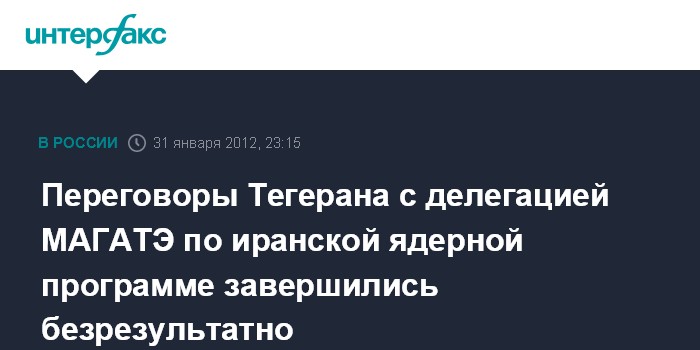 Тегеран. 31 января. INTERFAX.RU - Трехдневные переговоры иранских властей с делегацией МАГАТЭ по ядерной программе Исламской республики завершились без видимых результатов, сообщило во вторник местное агентство ФАРС.