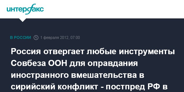 Россия отвергает любые инструменты Совбеза ООН для оправдания иностранного вмешательства в сирийский конфликт - постпред РФ в ООН