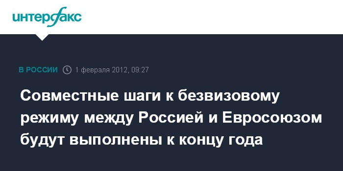 Совместные шаги к безвизовому режиму между Россией и Евросоюзом будут выполнены к концу года