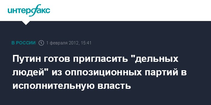 Москва. 1 февраля. INTERFAX.RU - Владимир Путин не исключает, что в случае победы на президентских выборах предложит посты в органах исполнительной власти своим политическим оппонентам.