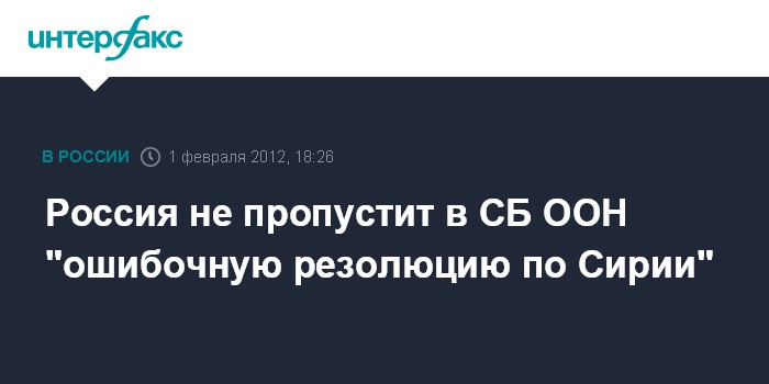 Москва. 1 февраля. INTERFAX.RU - Россия не позволит принять в СБ ООН текст резолюции по Сирии, который посчитает неприемлемым.