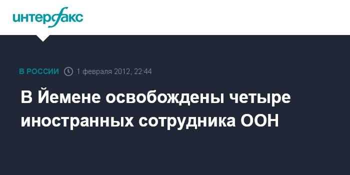 Каир. 1 февраля. INTERFAX.RU - Группа неизвестных вооруженных лиц освободила в Йемене четырех похищенных сотрудников Управления ООН по координации гуманитарных вопросов - колумбийца, немца, гражданку Ирака, а также палестинку, сообщил министр энергетики Йемена Салех Сумаи.