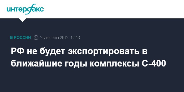 РФ не будет экспортировать в ближайшие годы комплексы С-400