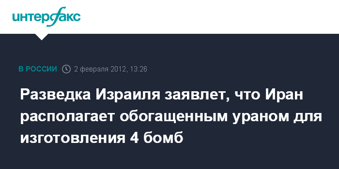 Разведка Израиля заявлет, что Иран располагает обогащенным ураном для изготовления 4 бомб