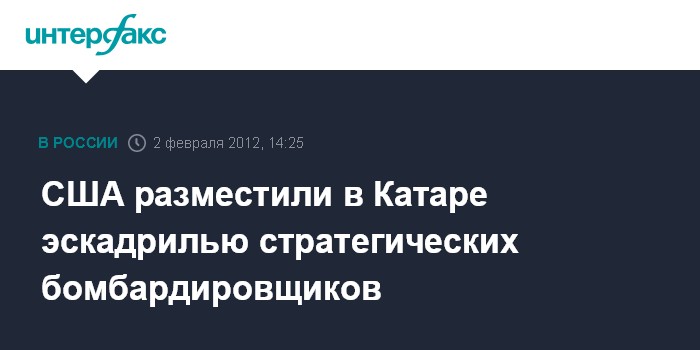 Тегеран. 2 февраля. INTERFAX.RU - США разместили на авиабазе "Aль-Убейд" в Катаре эскадрилью стратегических бомбардировщиков B-1B, сообщают иранские СМИ, ссылаясь на источники в силовых структурах.