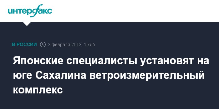 Южно-Сахалинск. 2 февраля. INTERFAX.RU - Ветроизмерительный комплекс установят в 2012 г. японские специалисты на юге Сахалина с целью изучения возможности ветрового потенциала для развития на острове альтернативной энергетики.