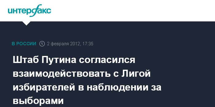 Москва. 2 февраля. INTERFAX.RU - Предвыборный штаб кандидата в президенты РФ Владимира Путина поддержал предложение Лиги избирателей о направлении на избирательные участки в день голосования наблюдателей от организации.